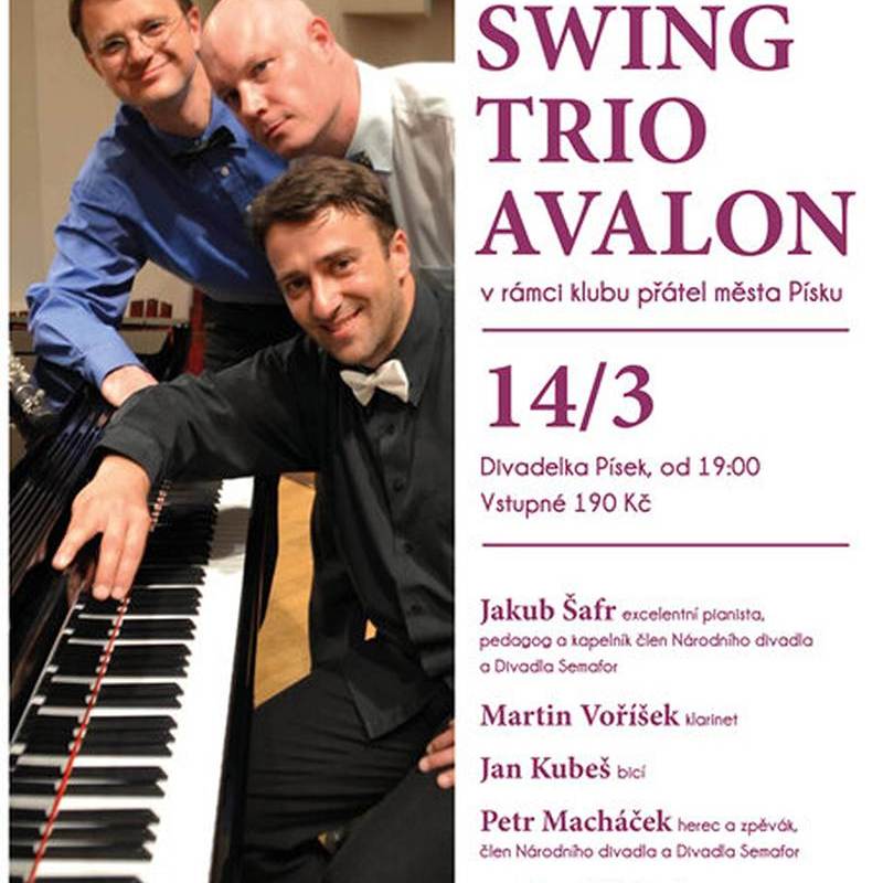 Zveme vás na koncert Swing Tria Avalon s pianistou Jakubem Šafrem a hostem Petrem Macháčkem, zpěvákem a hercem.