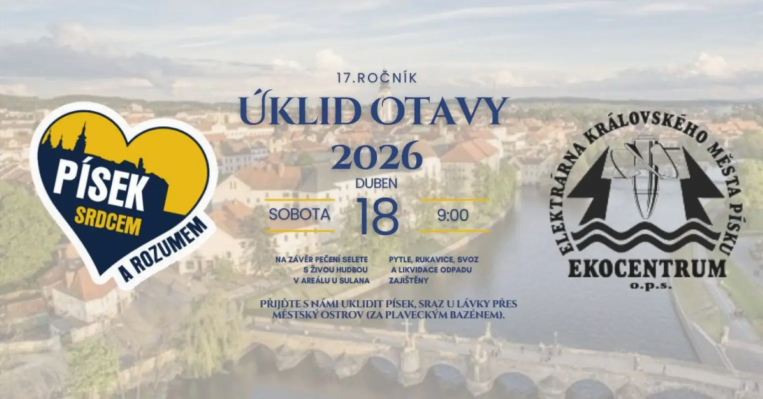 Přijďte s námi uklidit Písek, sraz u lávky přes Městský ostrov (za plaveckým bazénem).