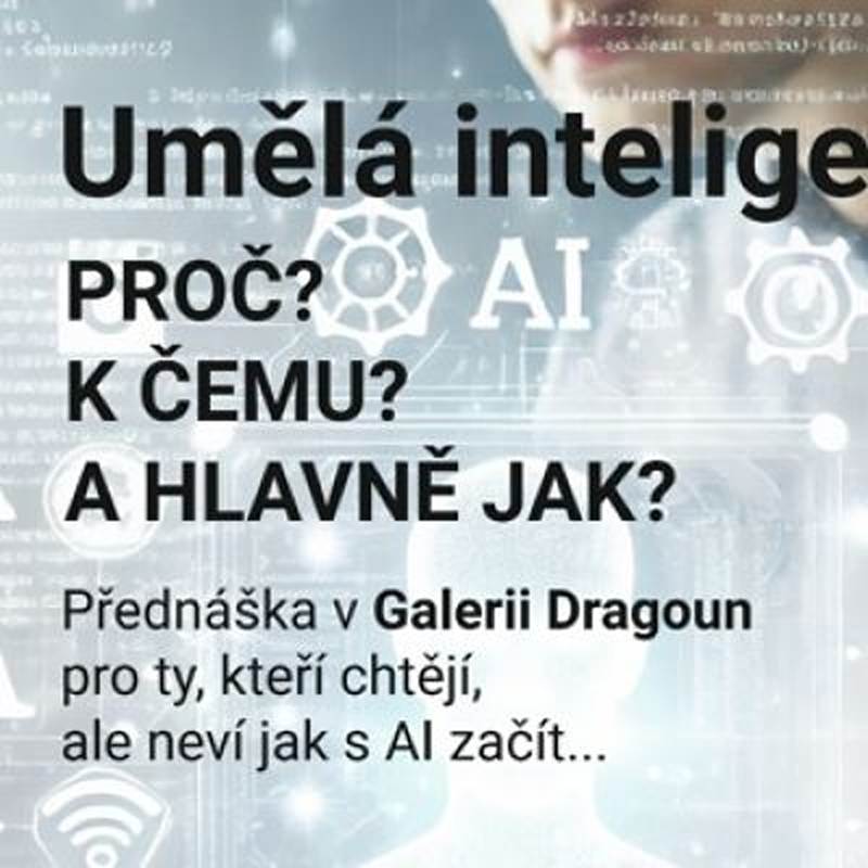 Galerie Dragoun je známá svým aktivním přístupem ke vzdělávání. A jelikož umělá inteligence (AI) je již mezi námi a mnozí ještě mají obavy z jejího používání a hlavně neví JAK ji používat, rozhodli jsme se udělat přednášku. Je určena těm, kdo o AI slyšeli, rádi by jí používali, ale vůbec netuší, jak začít…