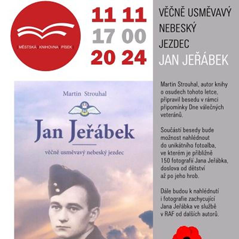Martin Strouhal, autor knihy o osudech tohoto letce, připravil besedu v rámci připomínky Dne válečných veteránů. Součástí besedy bude možnost nahlédnout do unikátního fotoalba, ve kterém je přibližně 150 fotografií Jana Jeřábka, doslova od dětství až po jeho hrob.