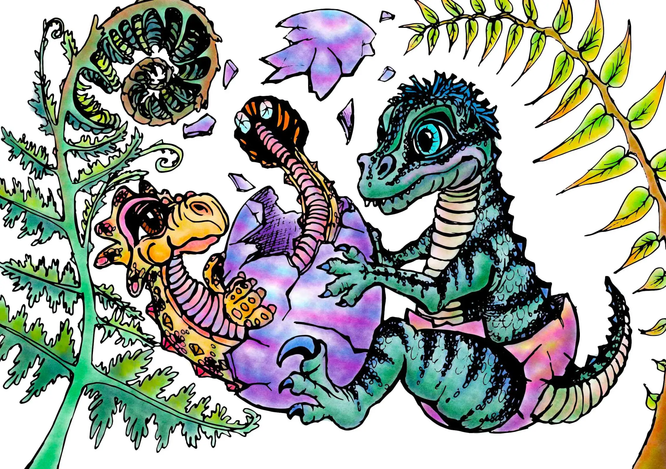 V hnízdě pod sopkou leží dvě vejce. Na svět se právě klubají dinosauří bráška a sestřička. Bráška Kubiceraptor je o trošku starší, a tak si myslí, že mu právem patří celý svět. Také si svou mladší sestřičku Jejdasauru jaksepatří dobírá… Jenže na světě nejsou sami. A co když za sopkou číhá někdo úplně jiný než dinomamka? Naši hrdinové brzy zjistí, že ve světě plném nebezpečí je dobré mít po boku někoho blízkého – i když je třeba úplně jiný než vy. Pohádka o nesourodých sourozencích z dob dávno minulých, v lecčem však aktuální i dnes…