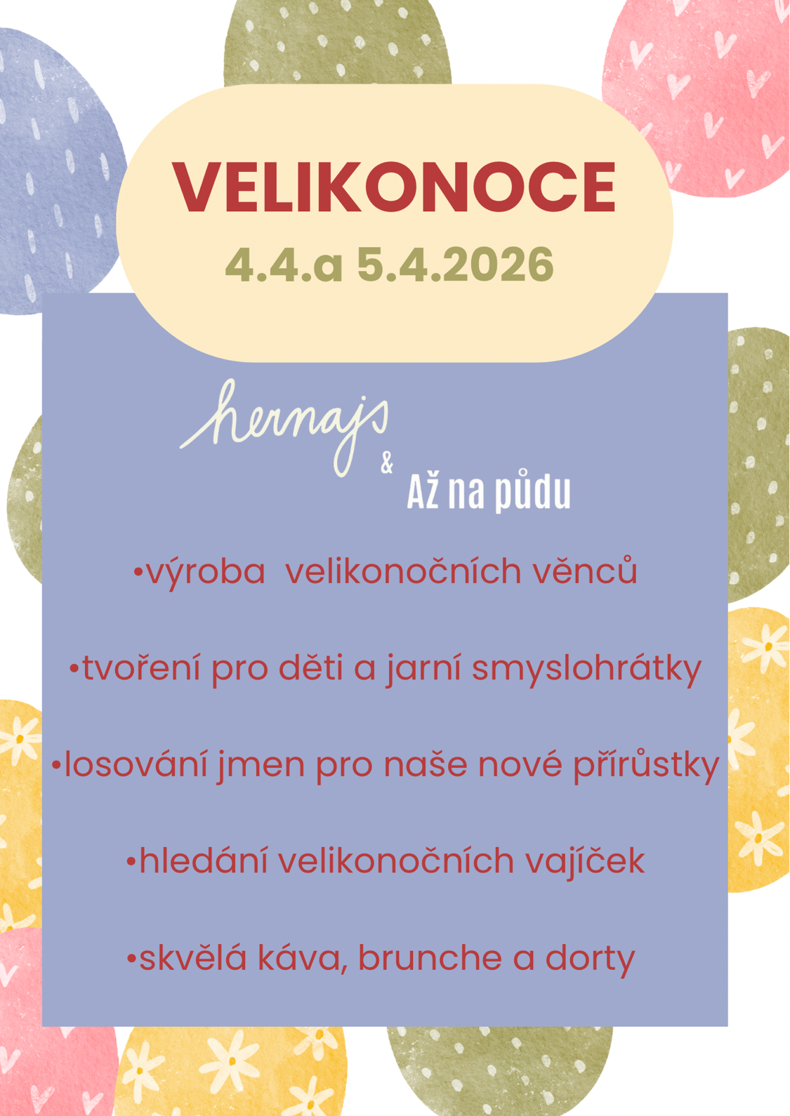 Velikonoční akce – výroba velikonočních věnců, tvoření pro děti, hledání velikonočních vajíček, skvělá káva, brunch a dorty:)