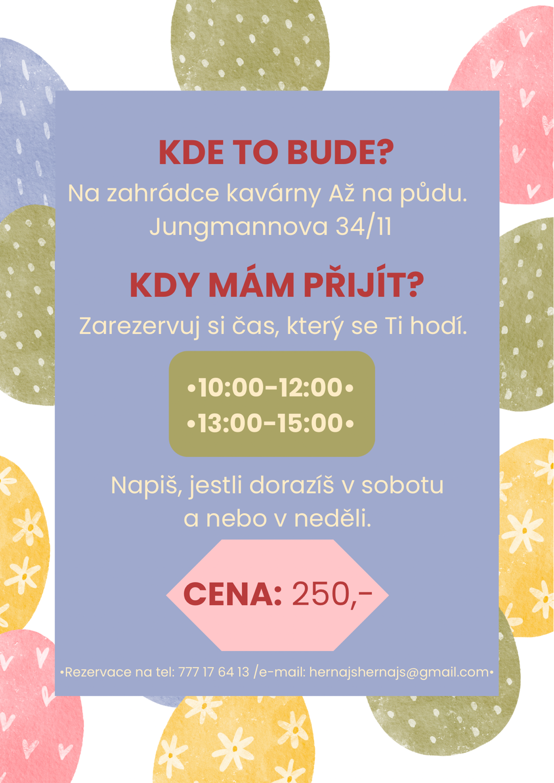Zarezervujte si kdy přijdete na hernajshernajs (zavináč) gmail.com nebo 777 176 413, cena 250 Kč.
