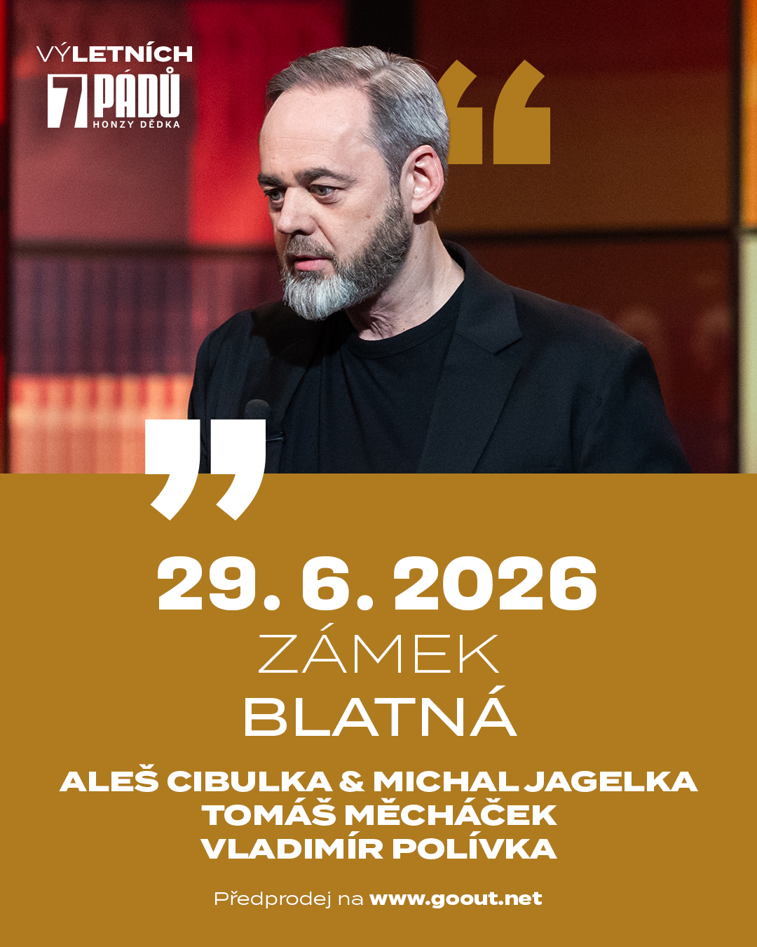 Těšit se můžete na Aleše Cibulku, Michala Jagelku, Tomáše Měcháčka, Vladimíra Polívku.