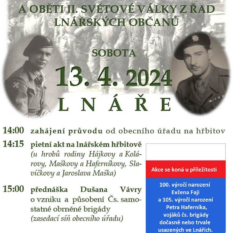 Vzpomínka na příslušníky Čs. samostatné obrněné brigády ve Lnářích a oběti II. světové války z řad lnářských občanů