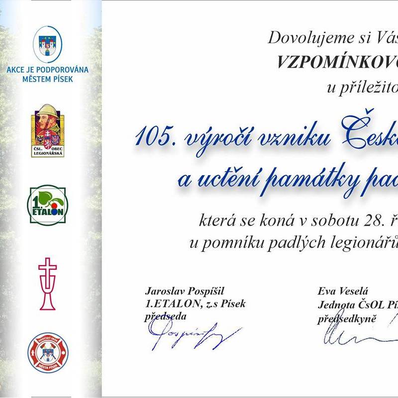 VZPOMÍNKOVÁ AKCE U PŘÍLEŽITOSTI 105. VÝROČÍ VZNIKU ČESKOSLOVENSKÉ REPUBLIKY
