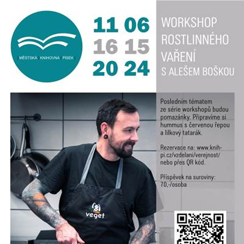 Posledním tématem ze série workshopů budou pomazánky. Připravíme si hummus s červenou řepou a lilkový tatarák. Příspěvek na suroviny: 70,-/osoba