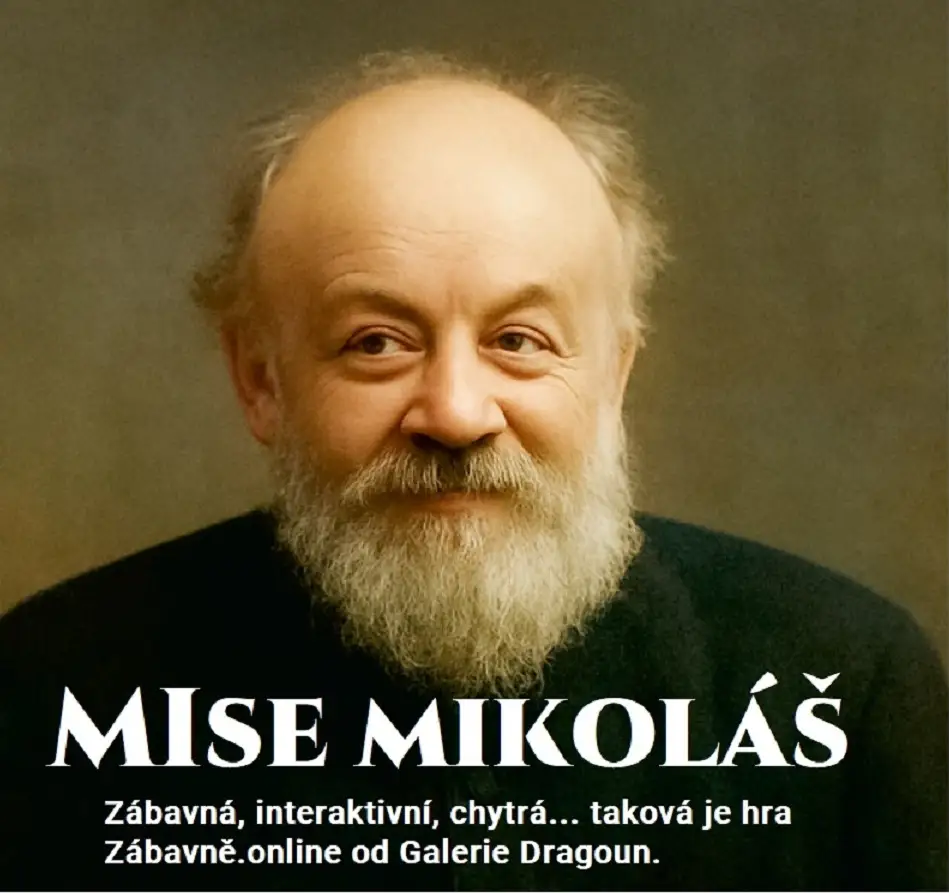 Hra nese příznačný název „MISE MIKOLÁŠ“ … to proto, že v Galerii Dragoun právě probíhá výstava jednoho z nejlepších českých malířů a ilustrátorů 19. století – Mikoláše Alše.